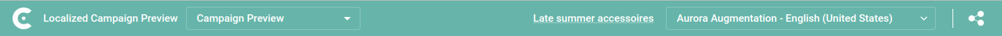 As shown in the picture of the preview’s header below, it is possible to switch between different previews (if defined, see below). It is also possible to switch between the different localized variants of the same campaign.