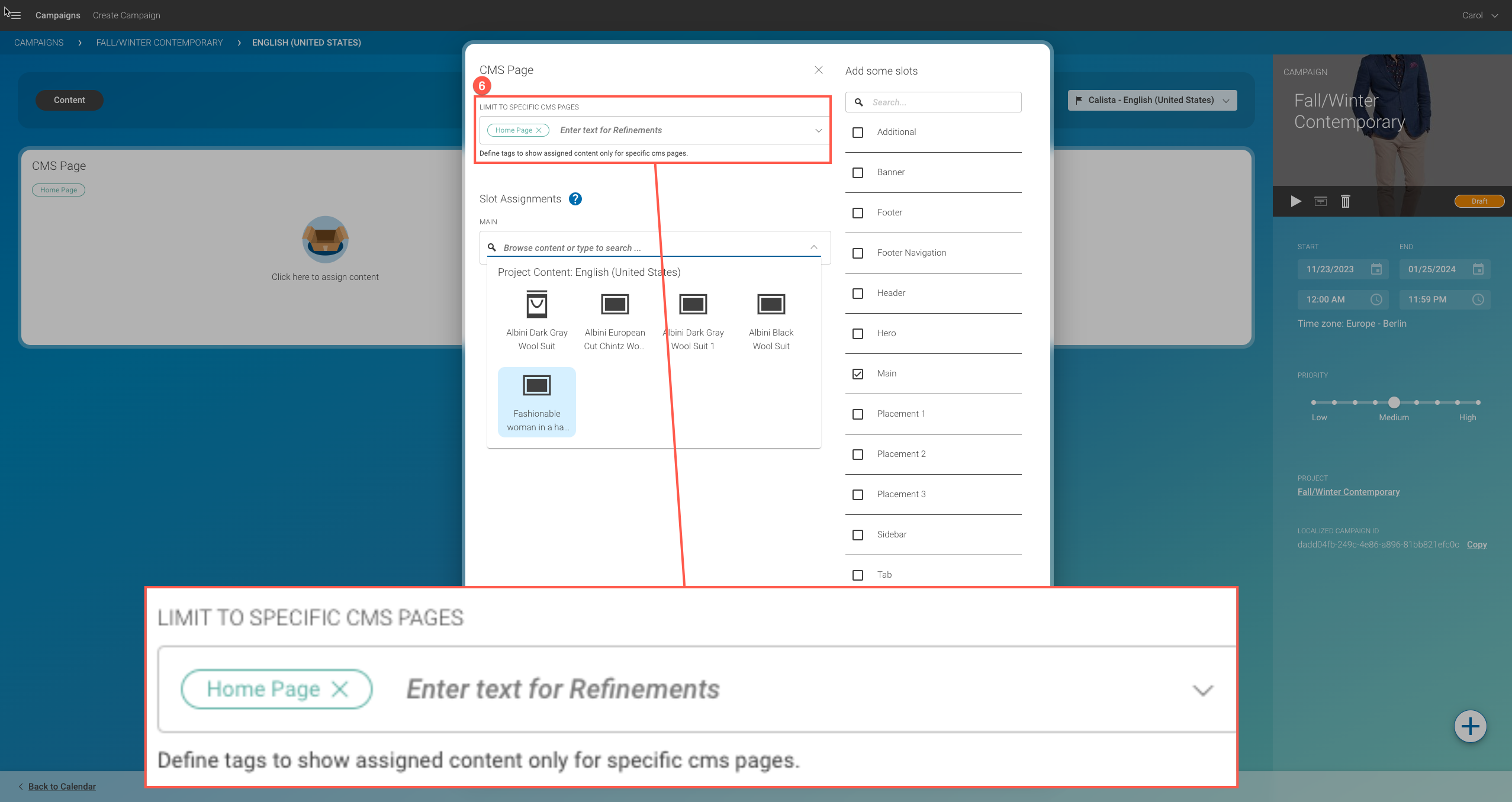 Your CoreMedia installation might contain more than one CMS page. If this is the case, you must click into the field (6) Limit to Specific CMS Pages: