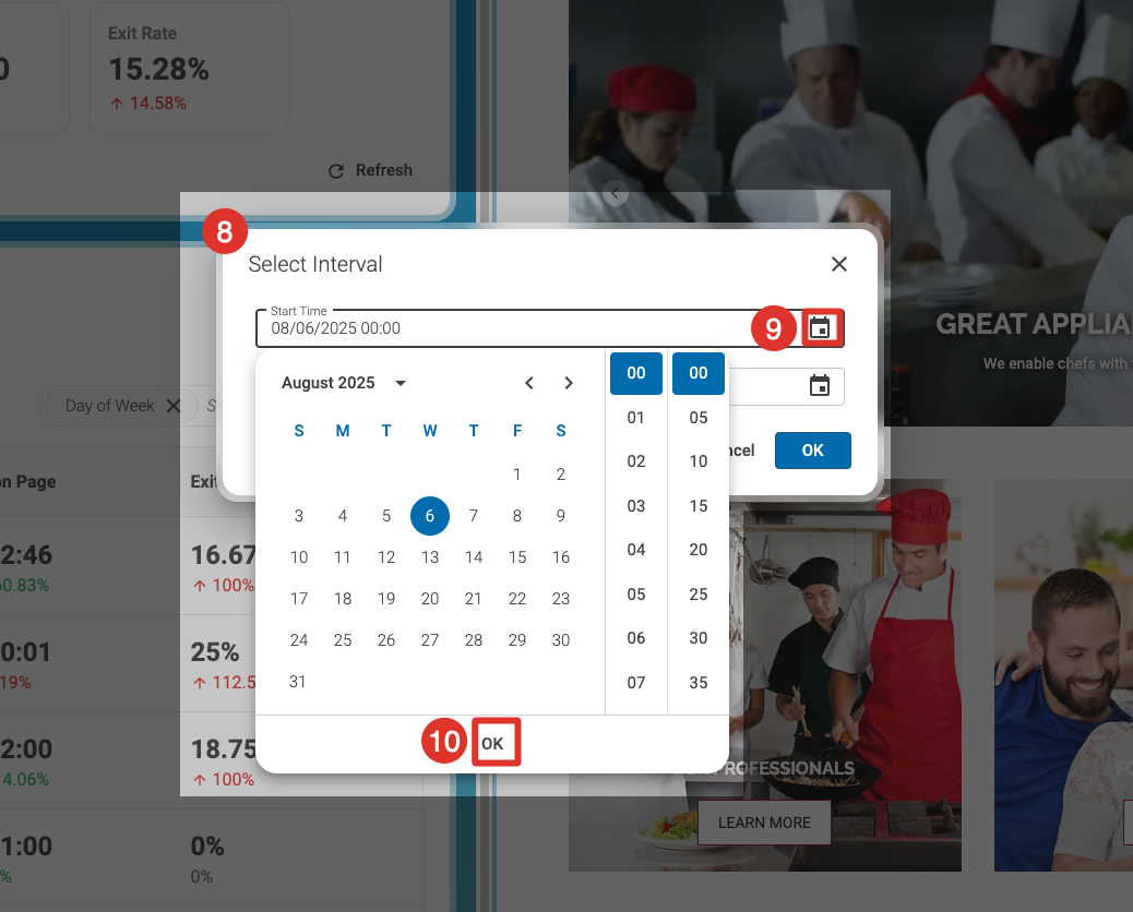 Once you’ve selected Custom from the menu, the dialog box Select Interval (8) opens. You can go back as many days, weeks, or months as you’d like.