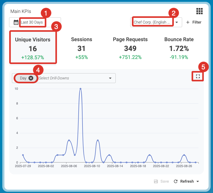 The Main KPIs widget gives you flexible ways to analyze your site traffic.