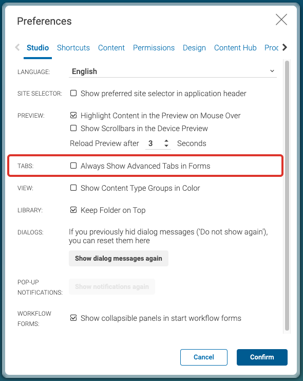 Every user can individually adapt the provided forms using the standard CoreMedia Studio feature called Configure Form.