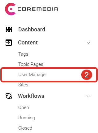 In the open Main Menu, select User Manager (2) from the Content category. The User Manager App opens in a new tab.