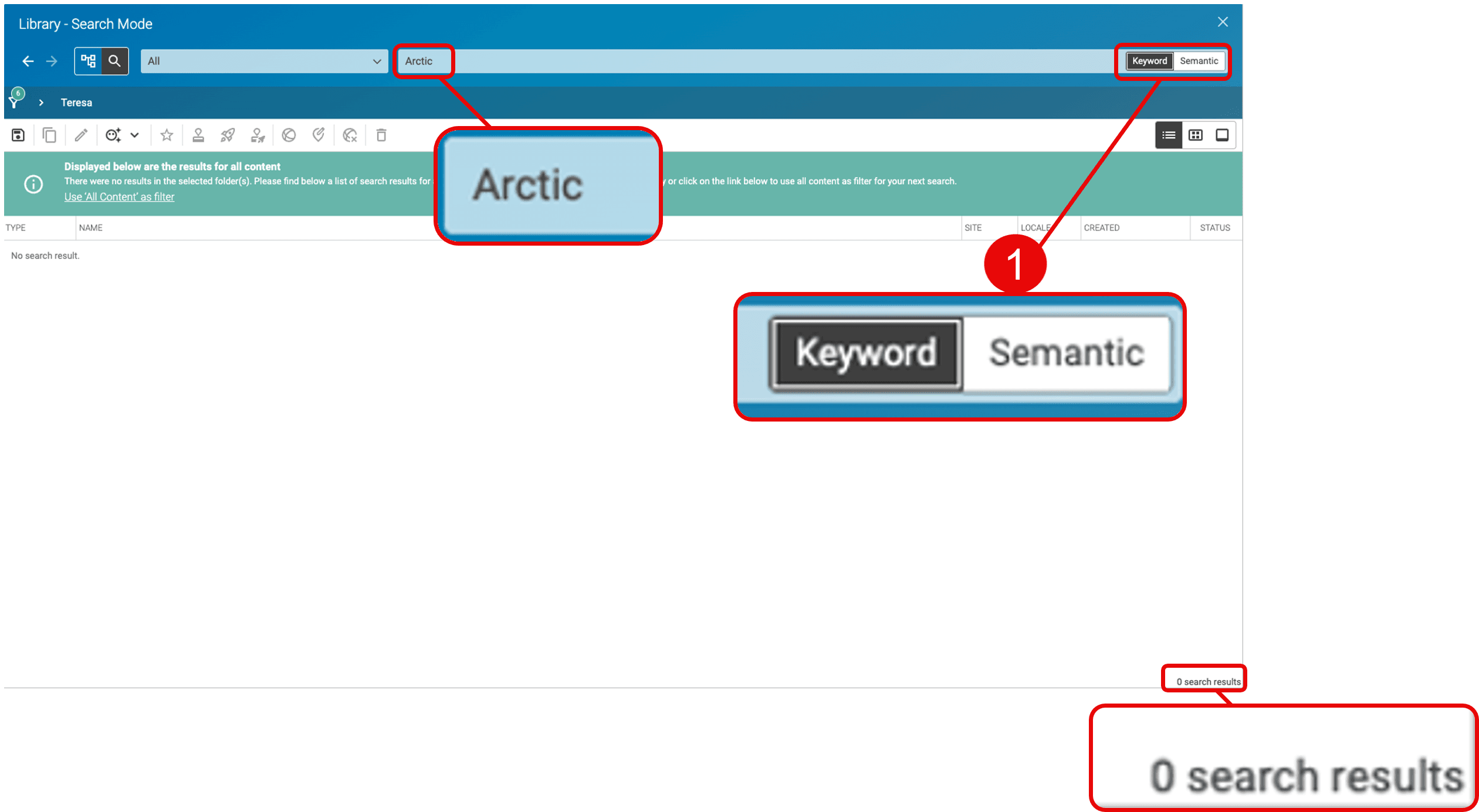 The picture below shows search results for "Arctic" with Semantic Search disabled: