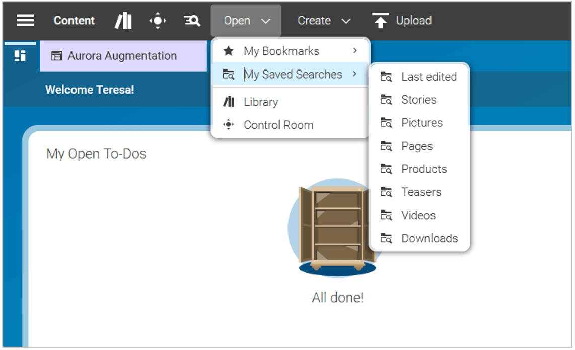 The following screenshot illustrates how this functionality can be accessed via the search pane of the CoreMedia Studio Library: